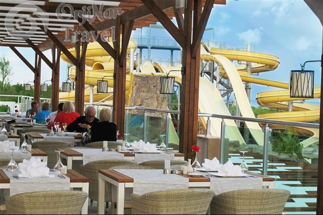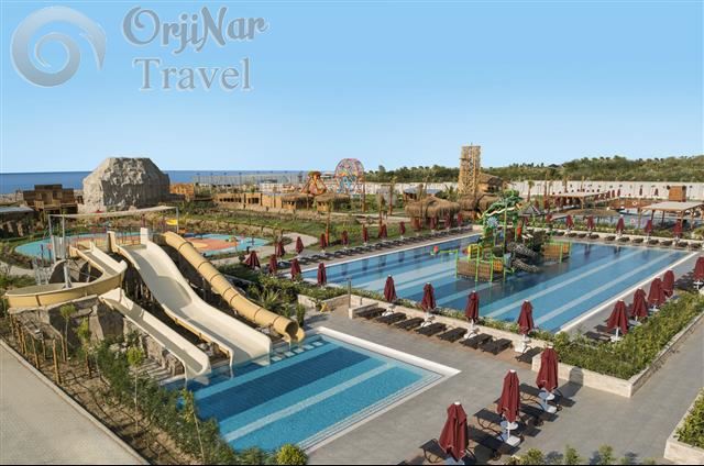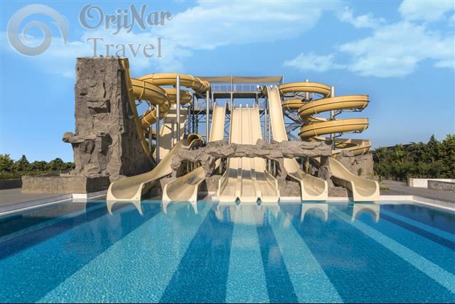 Tesisin denize 350 m uzaklıkta 150 m uzunluğunda, kum ve çakıl karışık bir plajı bulunuyor. Tesisin sahil kısmında toplamda 9 adet slide olan (6 adet yetişkin, 3 adet çocuk) aquapark mevcut. 65.000 m² alan üzerine kurulmuştur.