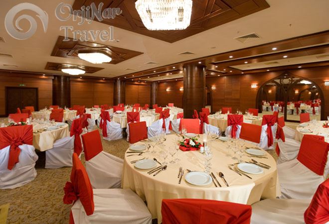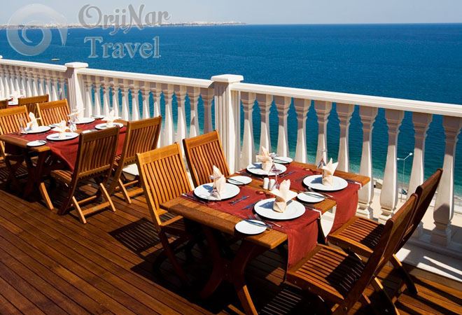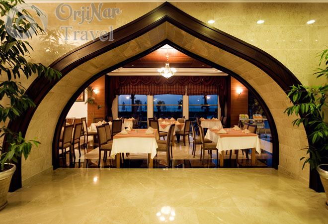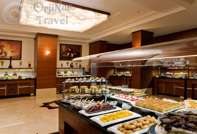 Sabah ve akşam yemekleri açık büfe olarak servis edilmektedir. Tesis genelinde yiyecek ve içecekler ücretlidir.Oda servisi 24 saat olup ücretlidir. Akşam yemeğinde tüm içecekler ücretlidir.