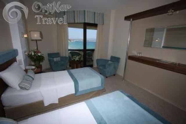 24 m2 genişliğindeki odalarda uydu tv, split klima, minibar, (boş ve ücretli), direk telefon, halı-parke zemin, kasa, balkon, küvet-duş, saç kurutma makinesi bulunur. Bütün odalar yandan deniz manzaralıdır.