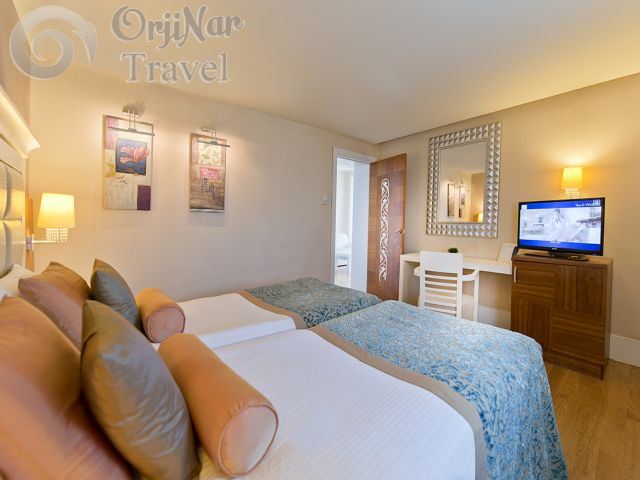 Odalar zemin halı ya da laminant parke olup, merkezi klima, uydu TV, minibar, çay-kahve seti, kasa, telefon, kablosuz internet, balkon, küvet, bornoz, terlik, telefon ve saç kurutma makinası bulunmaktadır.