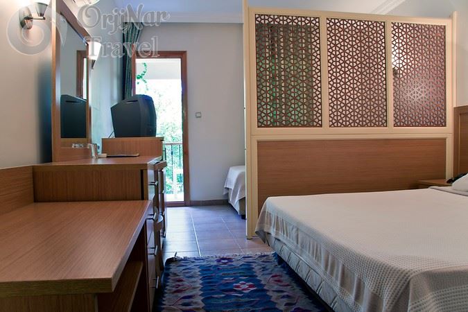 Odalarda balkon, banyo, duş, split klima, kasa, minibar, WC, saç kurutma makinası, televizyon ve telefon mevcuttur.
